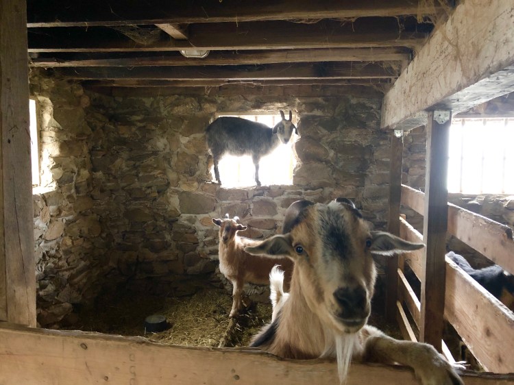 My donkeys share a 300-year-old barn with a tribe of goats.