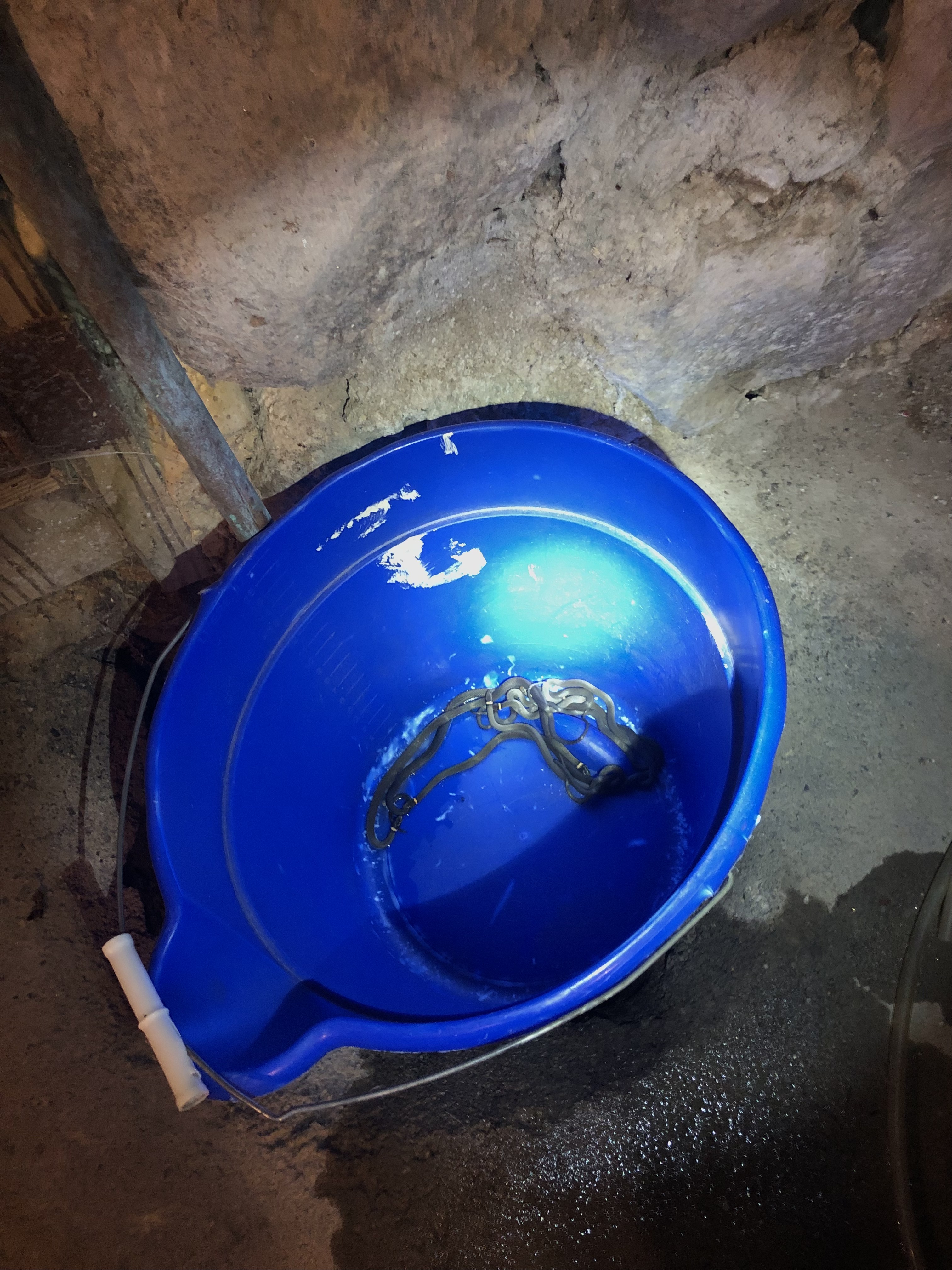 This isn’t the first snake I’ve seen in the basement. About a year ago, I went there to dump out the bucket into which the dehumidifier drains and found that the bucket was full, not of water, but of snakes.